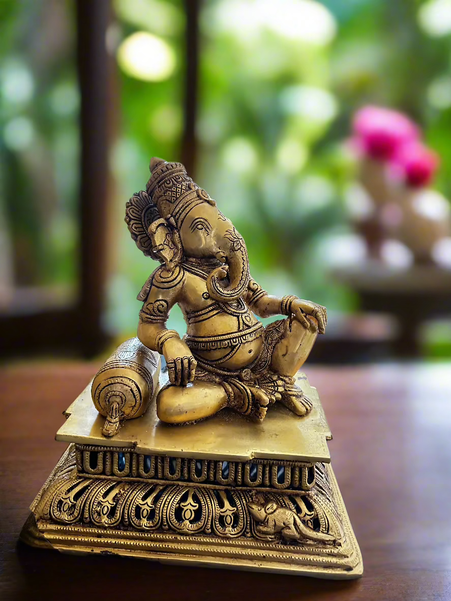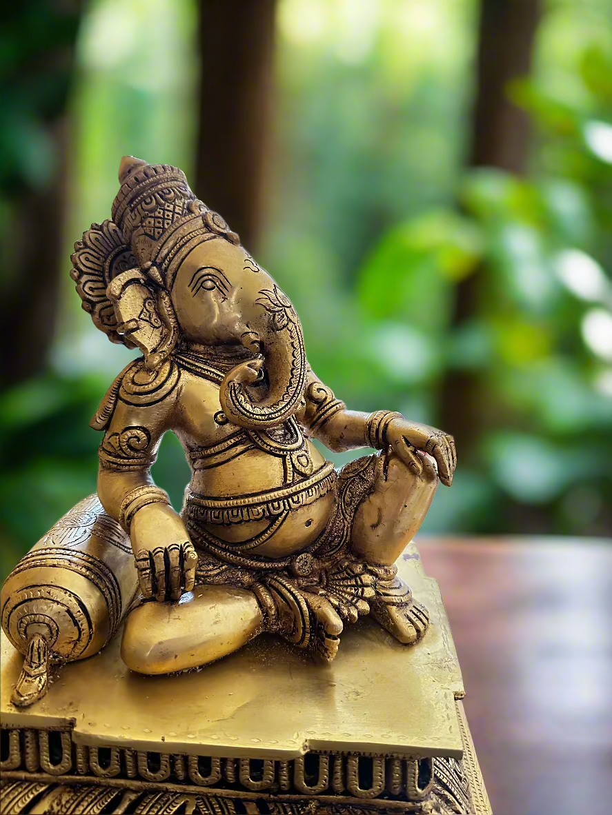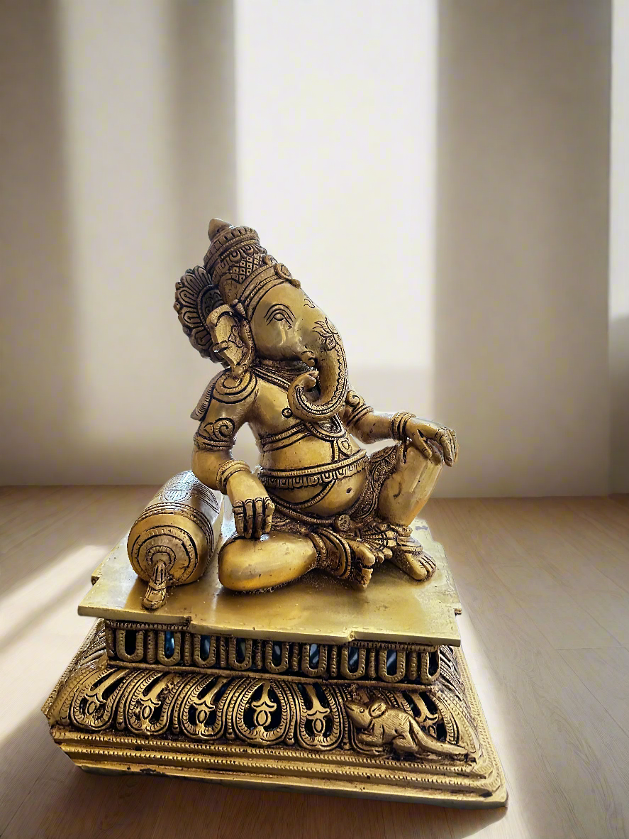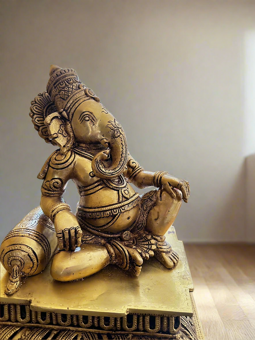 Ganesha Statue sitting on Aasana 12" Beautiful decoration for your entryway, living room, family room & office.