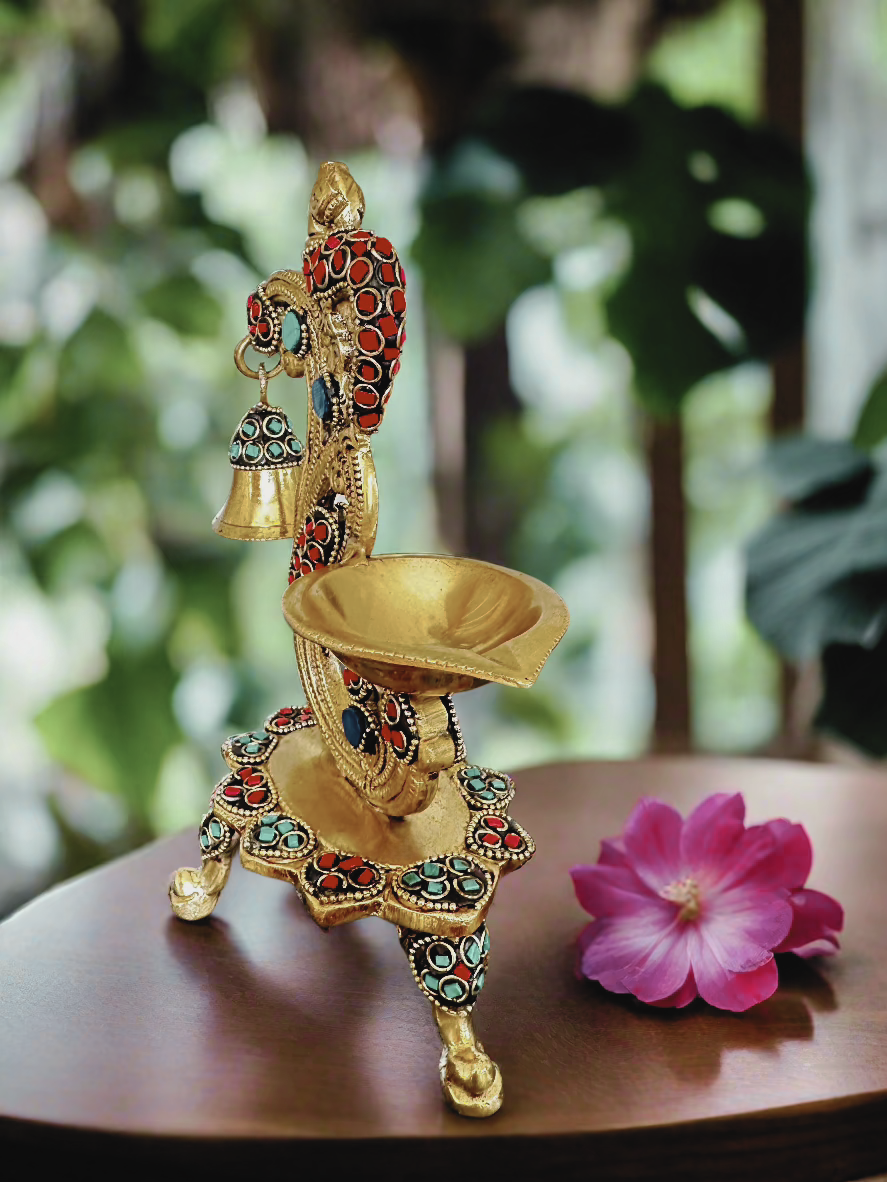 Peacock Diya with Stone work: A Masterpiece of Indian Craftsmanship