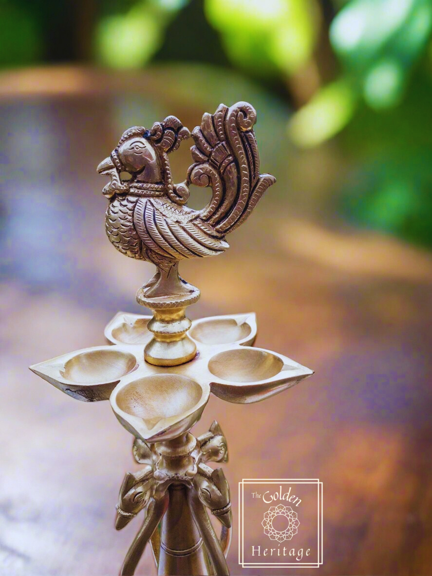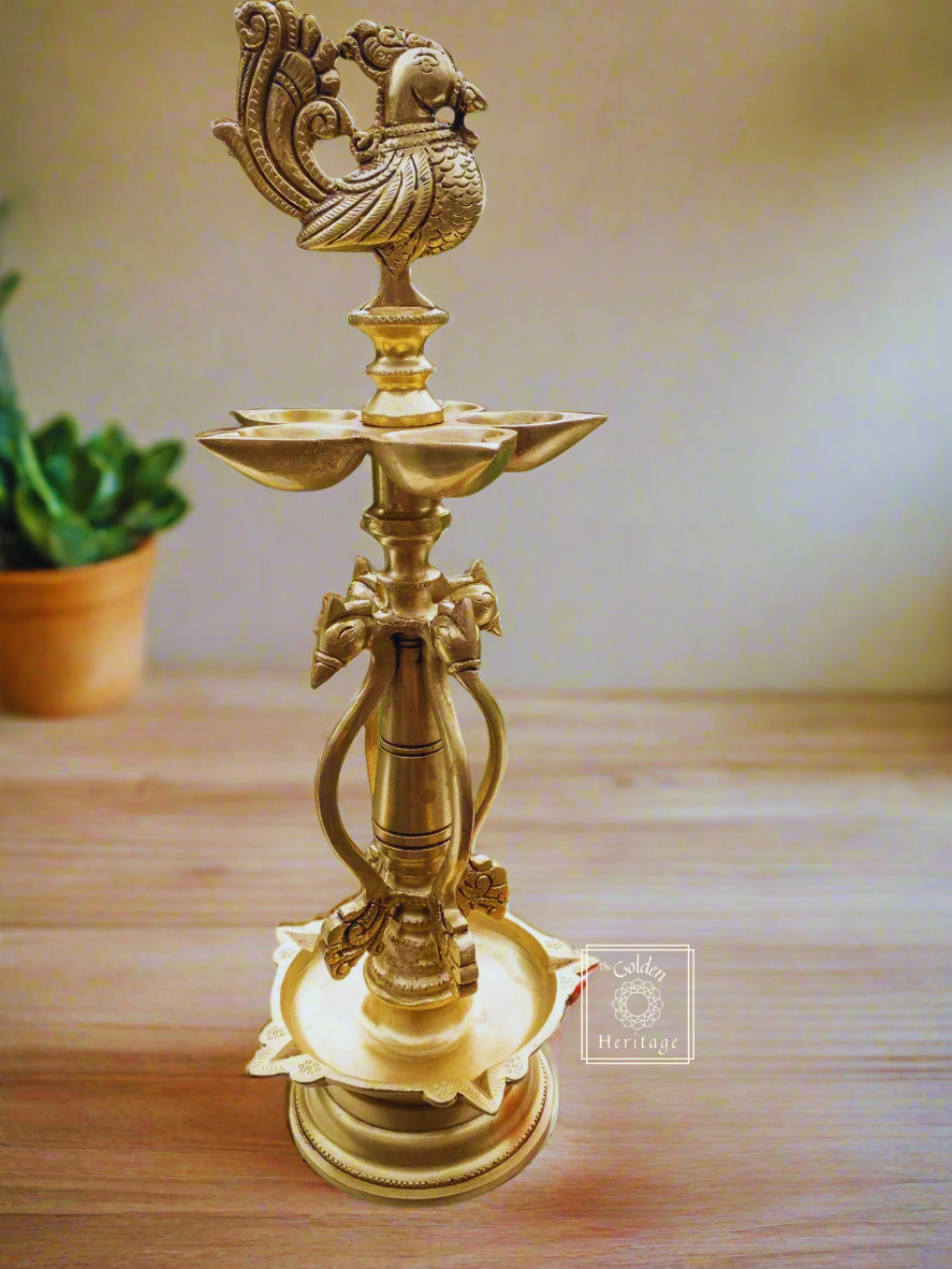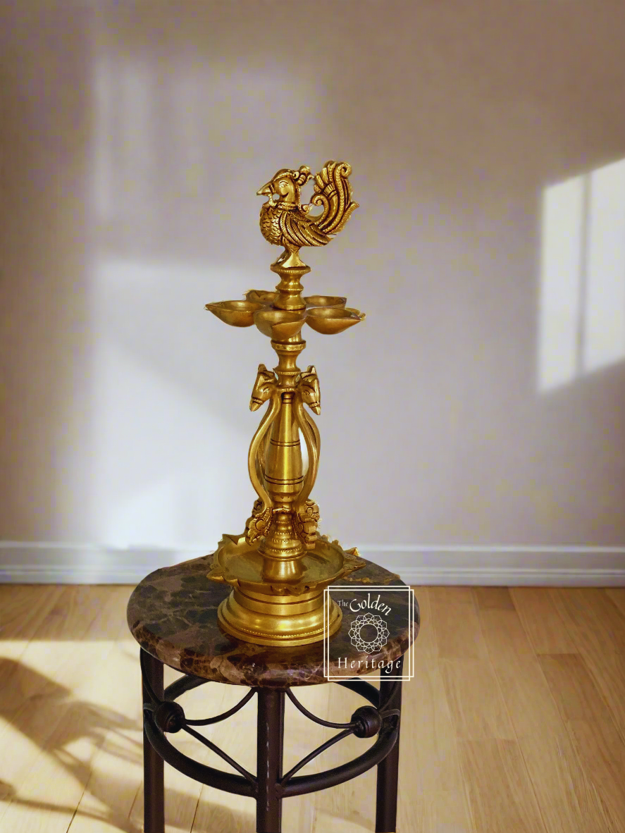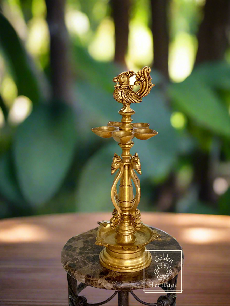 Peacock oil lamp with five Wick lamps - The Golden Heritage