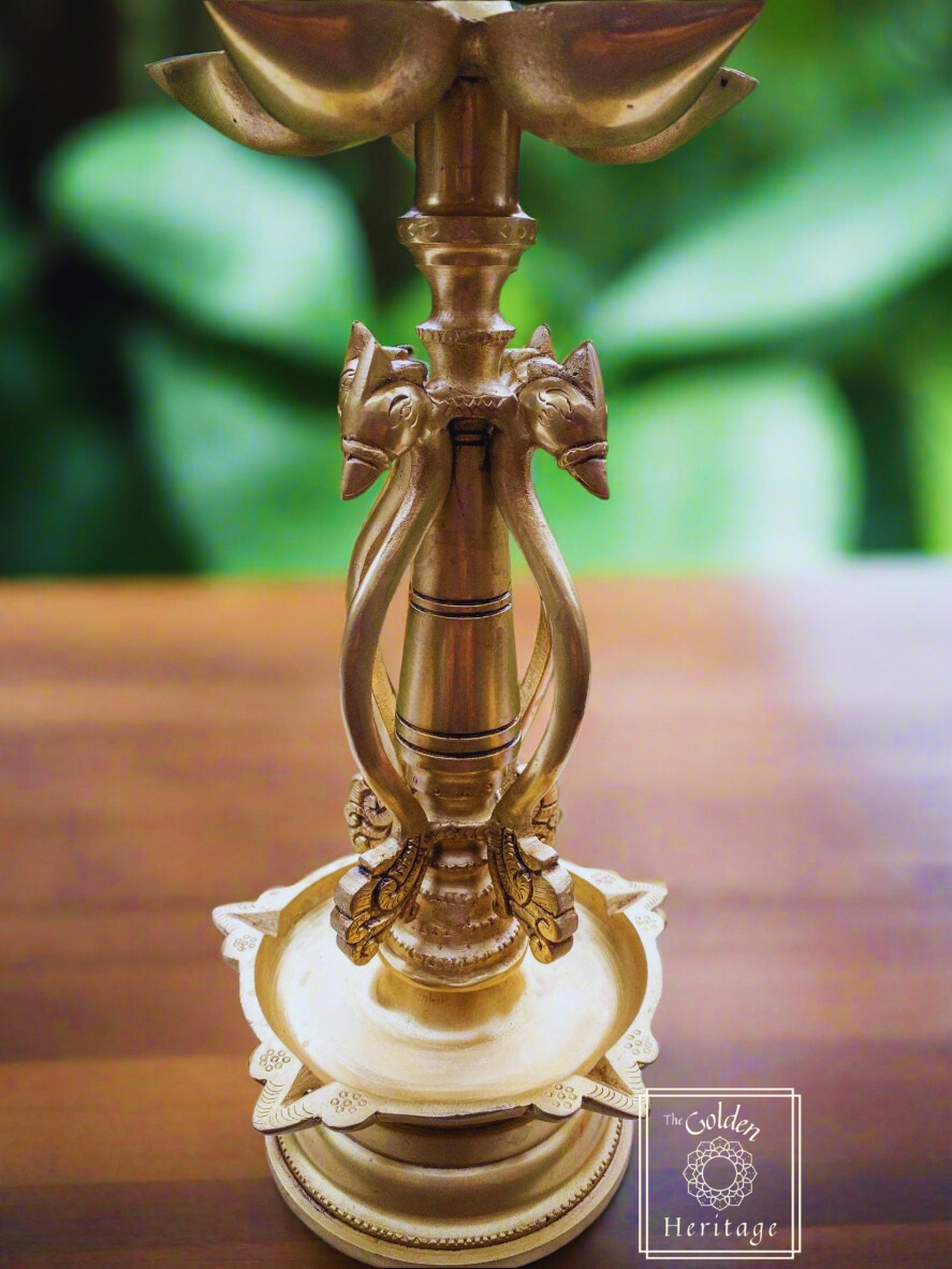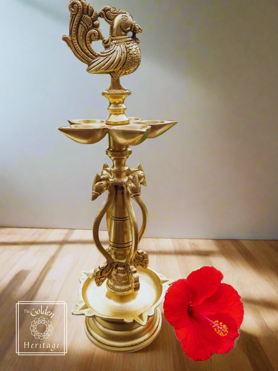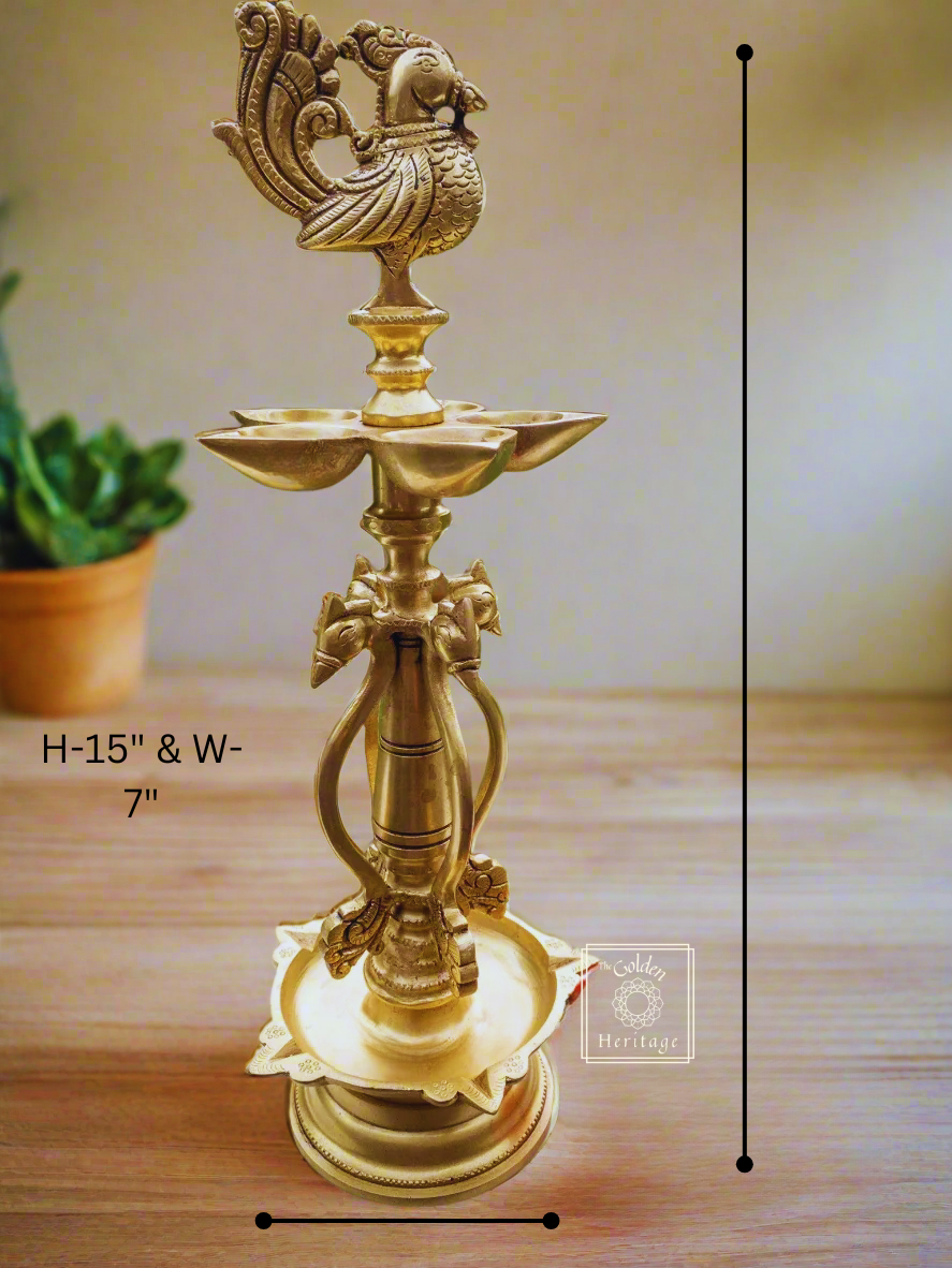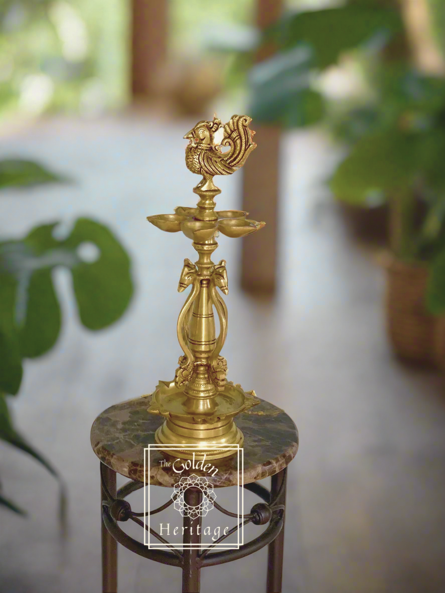 Peacock oil lamp with five Wick lamps - The Golden Heritage